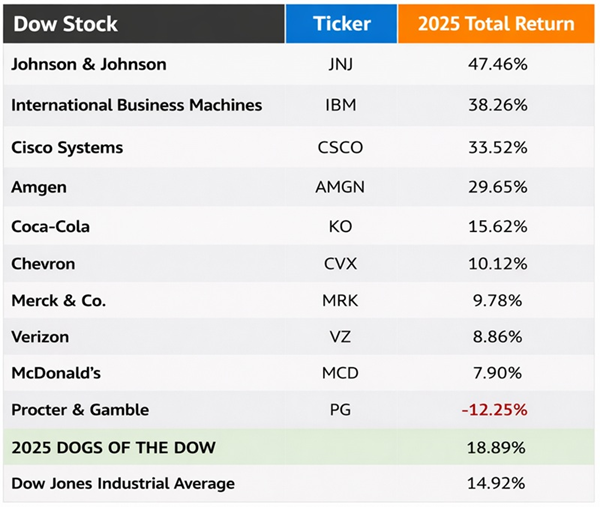 Are America’s blue chips going out of business in 2026? I think not. So “the Dogs of the Dow” suggests we buy these stocks when their prices are lower, their yields are higher, and the chances of a bounce-back are elevated—it’s the contrarian way!
