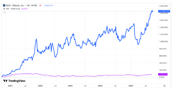 Over the past five years, Dillard’s stock price is up almost 1,900%!