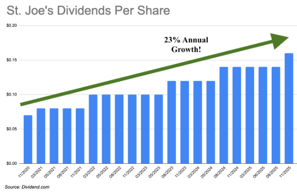 But St. Joe is rapidly raising its dividend, and it isn’t done.